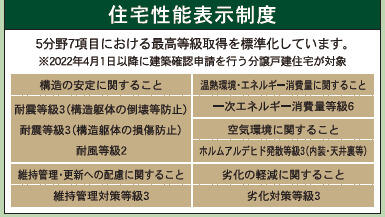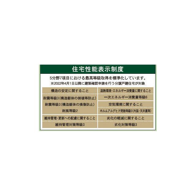 | エネルギー消費性能 | ★★★★(削減率30%達成) | 断熱性能 | 5段階/7段階中 |